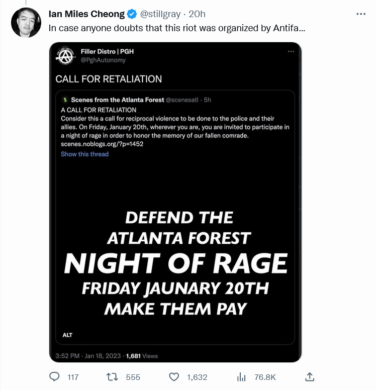 Here’s a recent case of arrests for burning from Atlanta where all but two of the people were from out of state. Could be a sign they’re going to significantly ramp up the chaos in the US this year.
