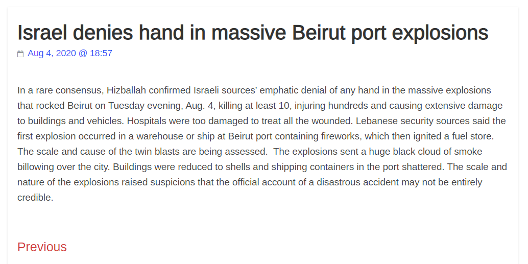 Prime Minister Hassan Diab said that 2,750 tonnes of the agricultural fertilizer ammonium nitrate that had been stored for years in a portside warehouse had blown up, sparking “a disaster in every sense of the word.”