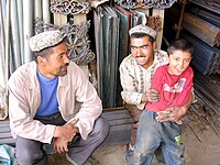 Group of Uyghur boys in Hotan, Xinjiang, China