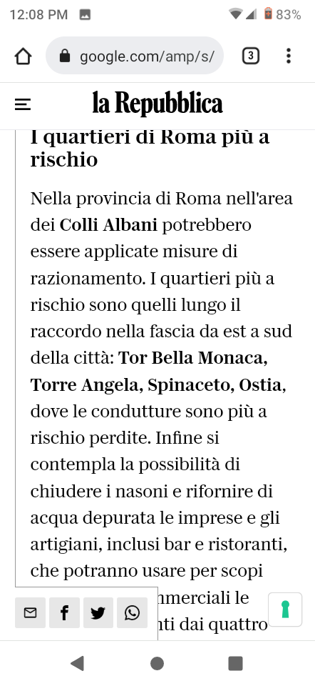 Yes, you are right that Italy has been faced with droughts, and regions in the past have thought about implementing similar measures to limit the consumption of water. The current situation in that respect doesn't seem much different from previous years although the media describes it as being more widespread than previous ones, especially in the north.I live in Northern Italy. We have droughts like this quite often,so what you published here is an alarmistic, fake news. Here you can see a screenshot from an Italian mainstream newspaper "La Republica" where is written that we had drought like this in 2017 too. It is also written that authorities have been only thinking about restrictions,not done anything. Anyway, for us, these situations aren't uncommon, so I found your post rather alarmistic.