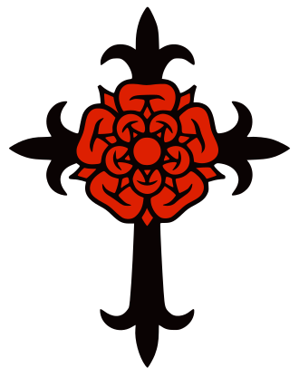 The Rose Cross (also called Rose Croix and Rosy Cross) is a symbol largely associated with the semi-mythical Christian Rosenkreuz: Christian Kabbalist, alchemist, and founder of the Roscirucian Order. The Rose Cross is a cross with a red, golden or white rose at its centre and symbolizes the teachings of a western esoteric tradition formed within the Christian tenets.