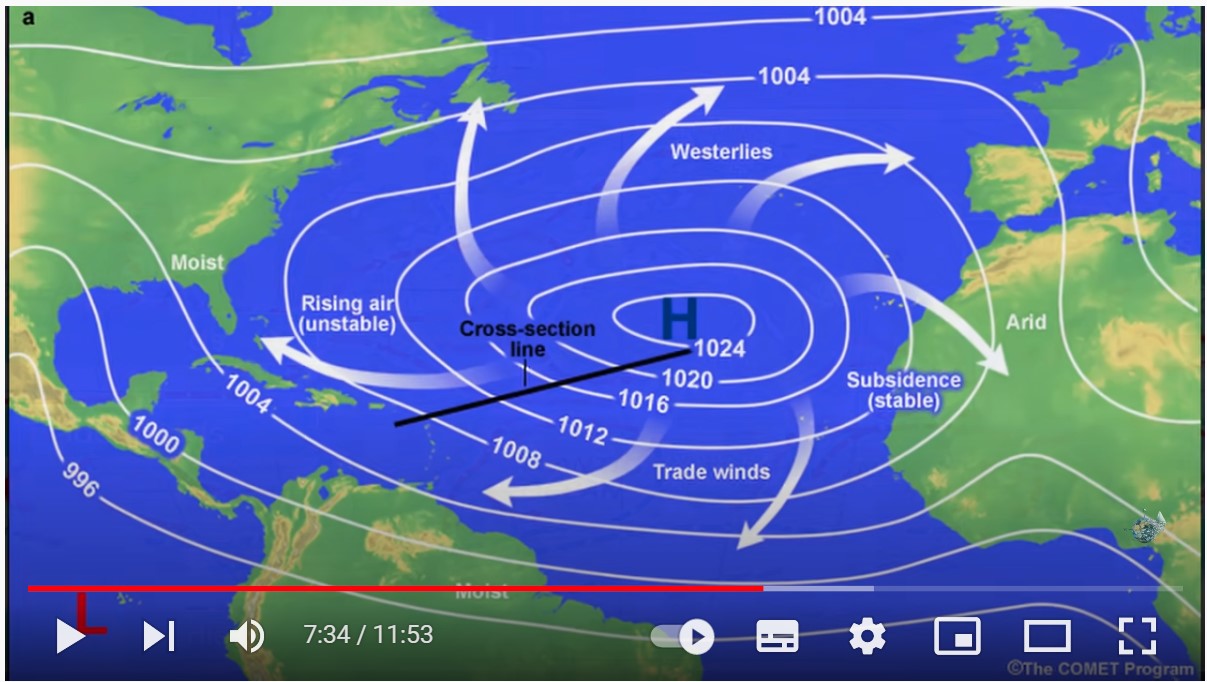 Going back to the video, there is an image that explains why the trade winds and the westerlies tend to curve